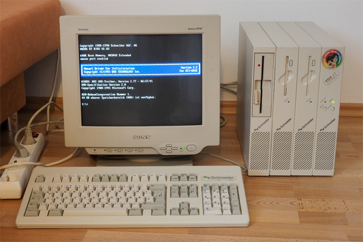 Vor zwei Wochen kam ein "neuer" PC in meine Sammlung: ein Schneider VGA AT System 70 CEG. Während man über den Vorgänger "Tower AT" System 2xx noch einige Infos im Netz findet, ist speziell zu diesem Modell fast nichts zu finden, insbesondere nicht, was es mit der CEG-Grafik aufsich hat (laut Aufkleber vorne ist die Farbpalette größer als bei VGA, aber wie nutzt man das?) und wie man den IDE-Port auf dem I/O-Board aktiviert. Wie dem auch sei, die technischen Daten meines Exemplars: