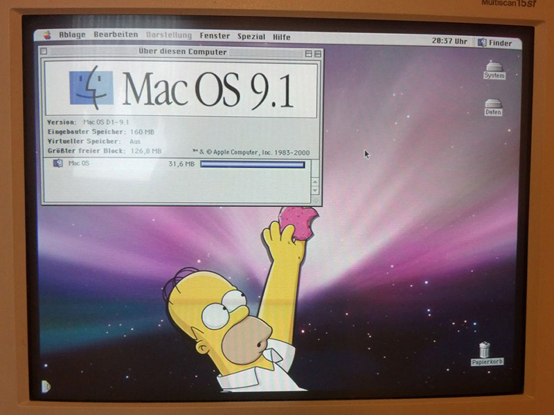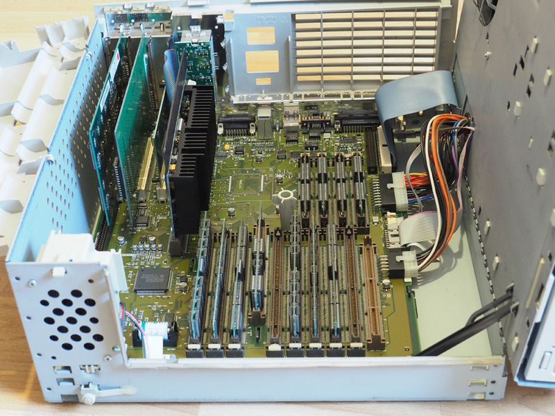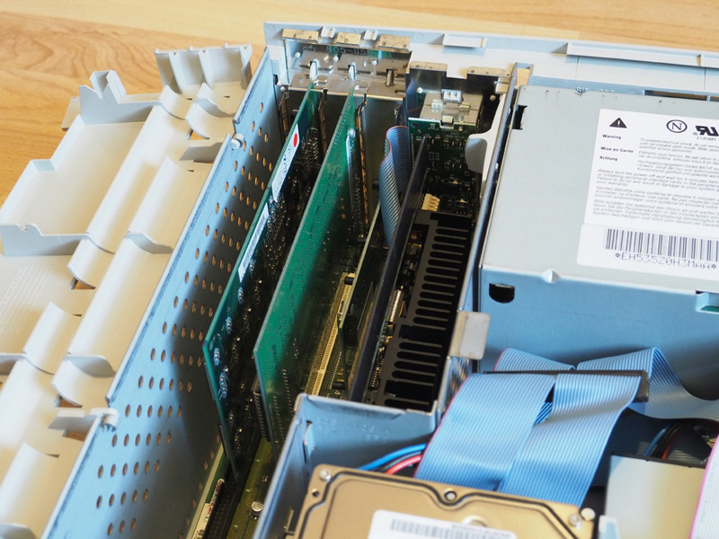 Seit Ende 2014 habe ich hier einen Apple Power Macintosh 7500/100 stehen, der schon aufgerüstet war und eine ganz ordentliche Ausstattung hatte. Durch einen kürzlich erhaltenen Nachschub an Hardware konnte ich dem PowerMac nun aber den letzten Schliff geben. Die CPU-Karte mit einem PPC 604e @ 200 MHz ist einer Newer Technology MAXpowr G3 220/110 gewichen, der RAM-Ausbau wurde optimiert (paarweise Neubestückung) und da die TwinTurbo 128MA eine reine 2D-Grafikkarte ist, wurde zusätzlich eine 3dfx Voodoo Graphics verbaut. Damit hat der 7500/100 jetzt folgende Ausstattung: